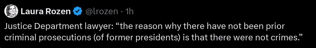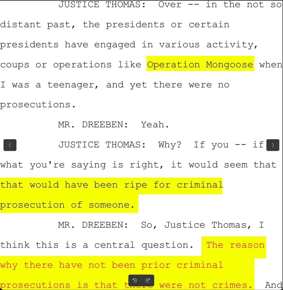 The journalist who first noticed it deleted her tweet without explanation, but the transcript shows the government really did argue today that the reason no President has ever been prosecuted is that 𝐧𝐨 𝐏𝐫𝐞𝐬𝐢𝐝𝐞𝐧𝐭 𝐡𝐚𝐬 𝐞𝐯𝐞𝐫 𝐜𝐨𝐦𝐦𝐢𝐭𝐭𝐞𝐝 𝐚 𝐜𝐫𝐢𝐦𝐞. Wild. https://t.co/uYxW0G8B8A