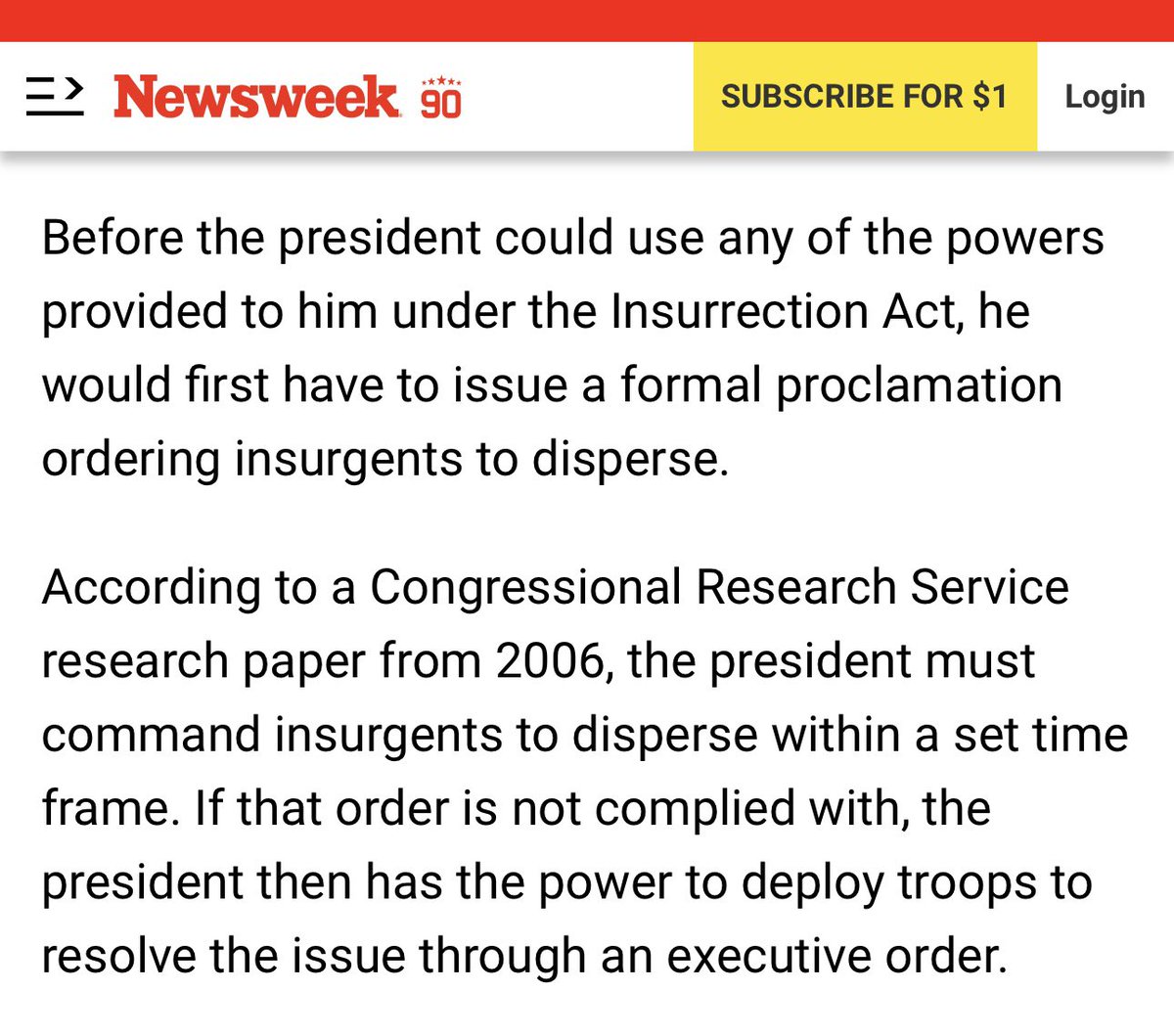 I’m not saying that Twitter deleting the video after 5 minutes nullifies the legality of the IA invocation But it sure does give opposing counsel a compelling legal argument that the public proclamation was only up for 5 minutes so it didn’t fully satisfy the legal requirement under the IA Not saying it’s a winning argument, but it’s a good one To be clear, I don’t know if Trump was attempting to invoke the IA with this video Just asking questions here