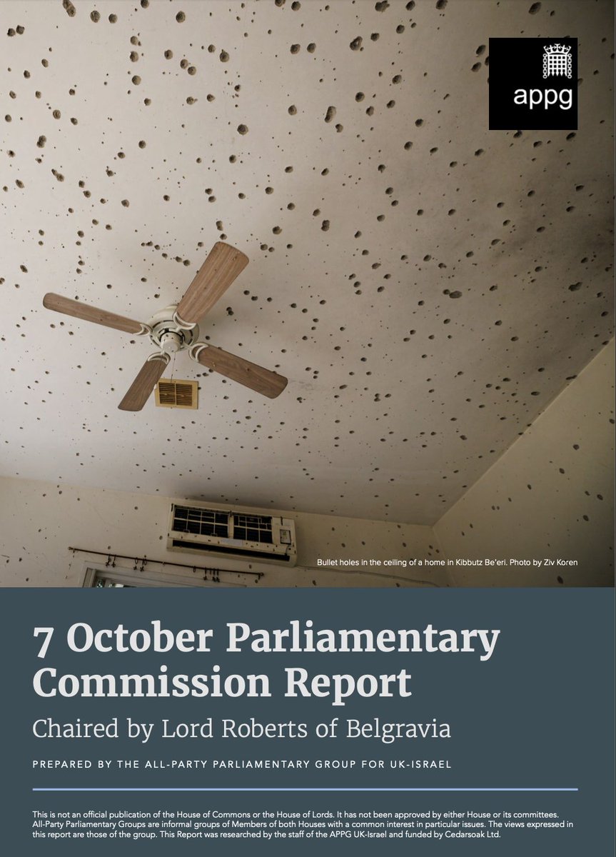 📍This Is Just a glimpse What I’ve shared here is only a fraction of The Roberts Report - a document that’s impossible to fully absorb in a single thread. It’s filled with overwhelming evidence: testimonies, footage, transcripts, and forensic findings. All of it factual. Nothing added. Nothing exaggerated. This is a formal British report, 300+ pages authored by MPs and Lords from across the political spectrum. It lays out - clearly and unflinchingly - what Hamas did: mass murder, rape, mutilation, and the burning of live infants. And they filmed themselves doing it. Now it’s documented. In English. For the world to see. As Lord Roberts, Chair of the Commission, writes: “We added nothing that wasn’t proven. The horrors need no exaggeration. Our aim is to establish a record - indisputable, now and for years to come - of the nearly 1,200 people murdered, often with a level of cruelty unseen since the Rape of Nanking. Holocaust denial took decades. October 7 denial took hours . The denial hasn’t only come from the Middle East. It has grown swiftly and boldly in the West.… As a non-Jew, I see it as a moral obligation to stop this new form of Holocaust denial - the denial of October 7. It’s the least we non-Jews owe the Jewish people." So I want to thank the Commission - and Lord Roberts - for producing this historic and essential document. And if you believe, like I do, that this must not be ignored - please share this thread. Here’s the link to the full report for anyone who wants to read it in full: https://bit.ly/41Sg3VI This is the hardest thread I’ve ever written in my life.