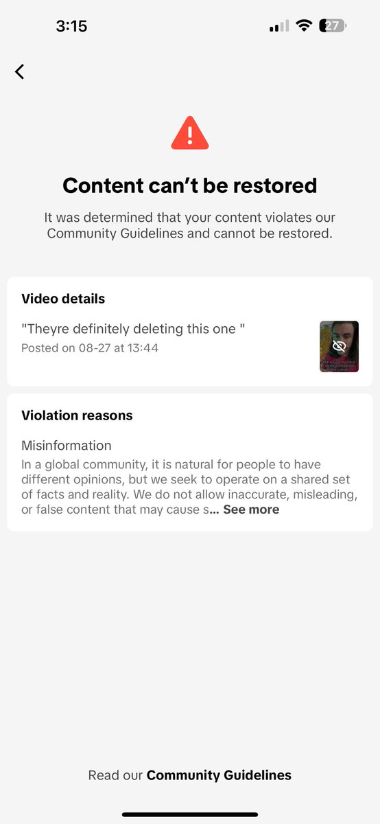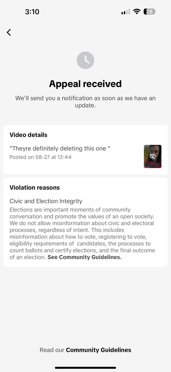 And appeal rejected. Strike added. Account punished. This is how they control the “truth” https://t.co/sZlQwzIicn