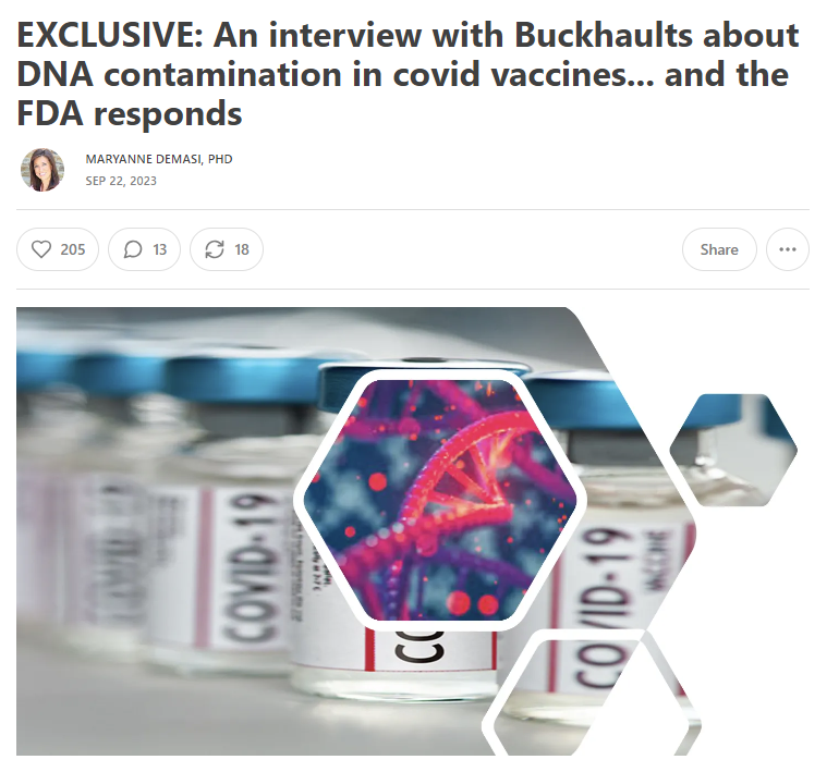 Together, this growing body of evidence confirms that widespread plasmid DNA contamination is NOT an isolated occurrence. Every additional day they remain on the market puts the public at risk of insertional mutagenesis, cancer, and other genomic harms. https://www.thefocalpoints.com/p/breaking-updated-pfizer-and-moderna