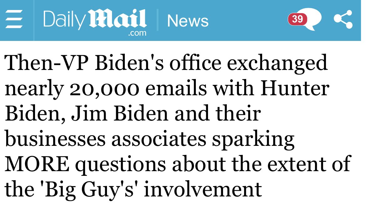 Joe Biden’s Vice President Office emailed Hunter Biden and Jim Biden businesses OVER 29,000 TIMES! Not his personal email. Biden’s VP email. The Big Guy was definitely involved. Heavily.