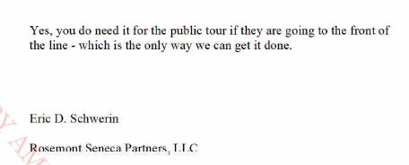 /12 Eric Schwerin told Davenport that the only way a tour would be possible would be to get them to “the front of the line.”