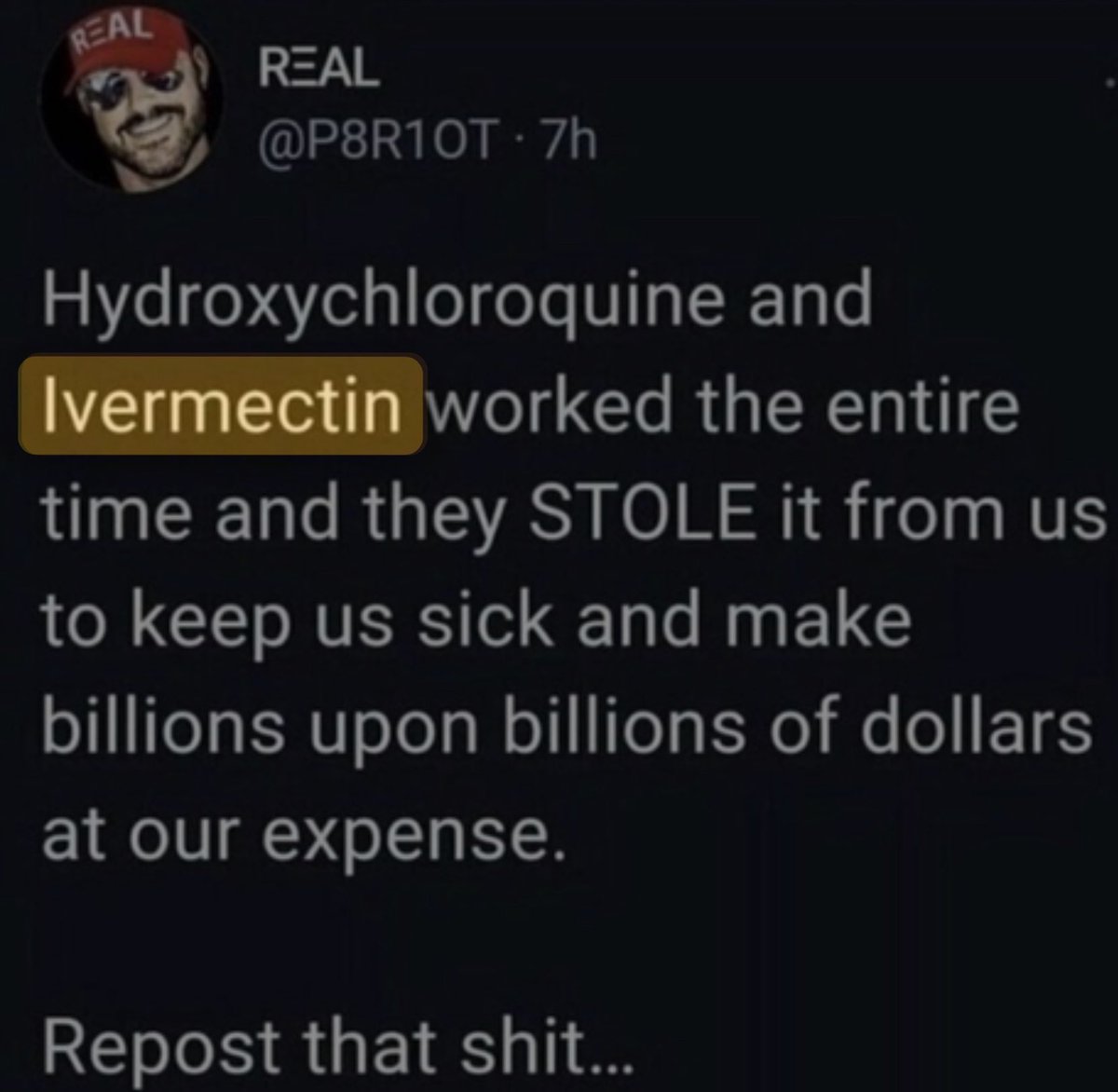 Ivermectin made by big harma. It’s wild how people won’t use wormwood, but will still trust harma after 2020…. https://t.co/p7KMG4xLbX