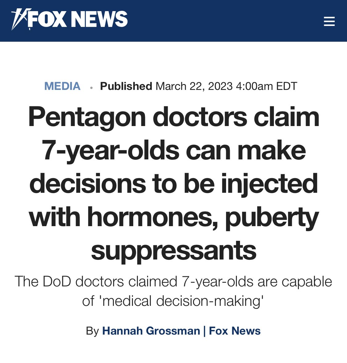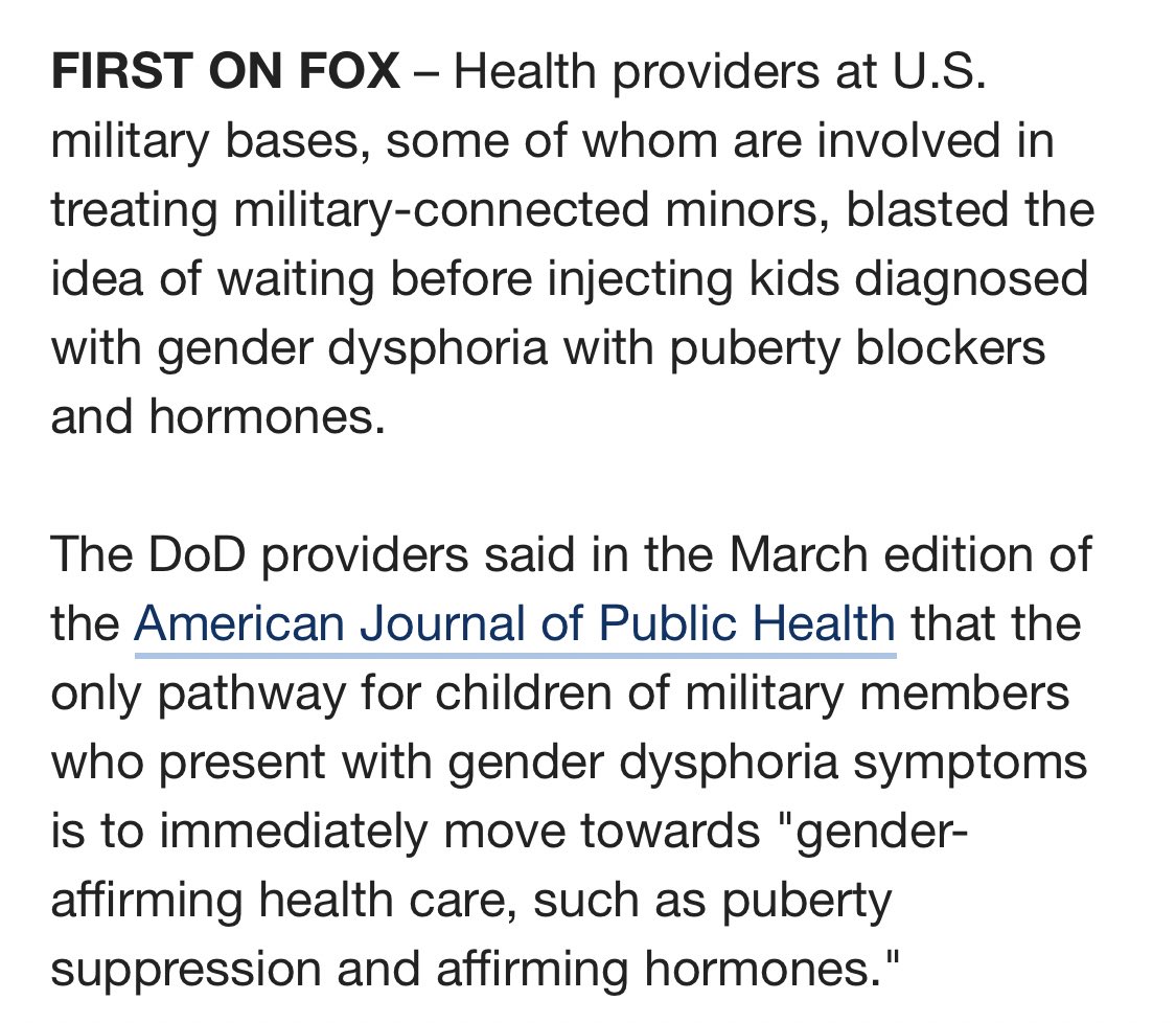 This comes on the heels of Pentagon doctors claiming that kids can make decisions to go on puberty blockers as early as 7 years old and advocating for a DOD policy approach that would force doctors to affirm a transition immediately instead of "wait and see" or not affirming.
