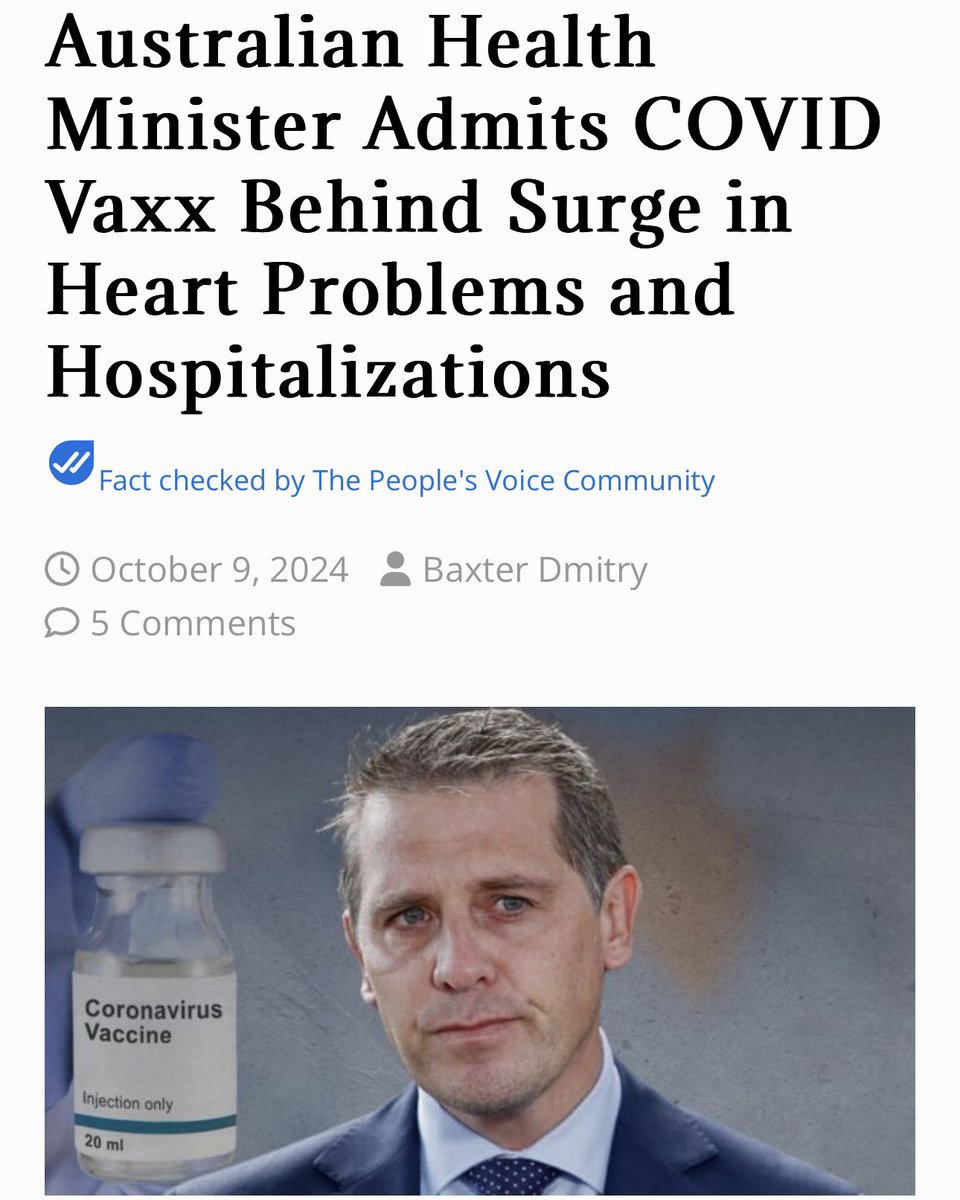 BREAKING NEWS: Canada starts euthanizing the COVID-19 Vaccine Injured. Ontario doctors have murdered the first Vaccine Injured man and are coming for the rest! So this is the latest BREAKING NEWS out of Canada. Doctors have started killing off the COVID-19 Vaccine Injured, something I repeatedly predicted would happen. You really can't make this up (this was reported by the National Post on Oct.24, 2024): "An Ontario man in his late 40s with a history of mental illness died by euthanasia after his assisted death assessors decided that the most reasonable explanation for his physical decline was a post COVID-19 “vaccination syndrome.”" If you're reading this, read it a few times and let it sink in. Because this will impact the rest of the world. "Identified as “Mr. A,” the man experienced “suffering and functional decline” following three vaccinations for SARS-CoV-2" "his MAID assessors “opined that the most reasonable diagnosis for Mr. A’s clinical presentation (severe functional decline) was a post-vaccine syndrome, in keeping with chronic fatigue syndrome.”" I'll stop there, because the story just keeps getting worse. I've predicted this in dozens of articles and interviews over the past year, and I don't think anyone listened, or took me seriously, but here we are. MAID will become the main vehicle to kill off the COVID-19 Vaccine injured. Everyone involved in the COVID-19 Vaccine Fraud wants the Vaccine injured dead: ➡️ doctors who gave the shots (you can tell by how they treat or abandon the vaccine injured). ➡️ scientists who pushed the mRNA fraud (they despise the vaccine injured and viciously attack them online) ➡️ media and propagandists for big pharma (they ignore the vaccine injured and minimize the damage done to them - gaslighting) ➡️ compromised health officials (they reject all vaccine injury reports or bury them) ➡️ politicians (they pretend vaccine injuries don’t exist and aren’t a serious issue to be addressed) Since the Vaccine cult is a death cult, it was always going to go this way for the mRNA vaccine injured. That’s why the Vaccine Injured receive no support, no funding, no research, no treatment and no compensation. It’s not nice for me to say this, but the goal of the Vaccine Cartel was always to kill off the Vaccine Injured. They represent too much evidence - evidence of vaccine fraud, contaminated vaccines, etc. The next step will be scaling up the MAID killings of the vaccine injured, as hundreds of thousands of Canadians are severely COVID-19 Vaccine Injured. Since @JustinTrudeau is staying on, we can expect this process to accelerate. Article Link in photo to avoid shadowban, just re-type the URL in the 1st photo at the top, into your browser to access @ABDanielleSmith #DiedSuddenly