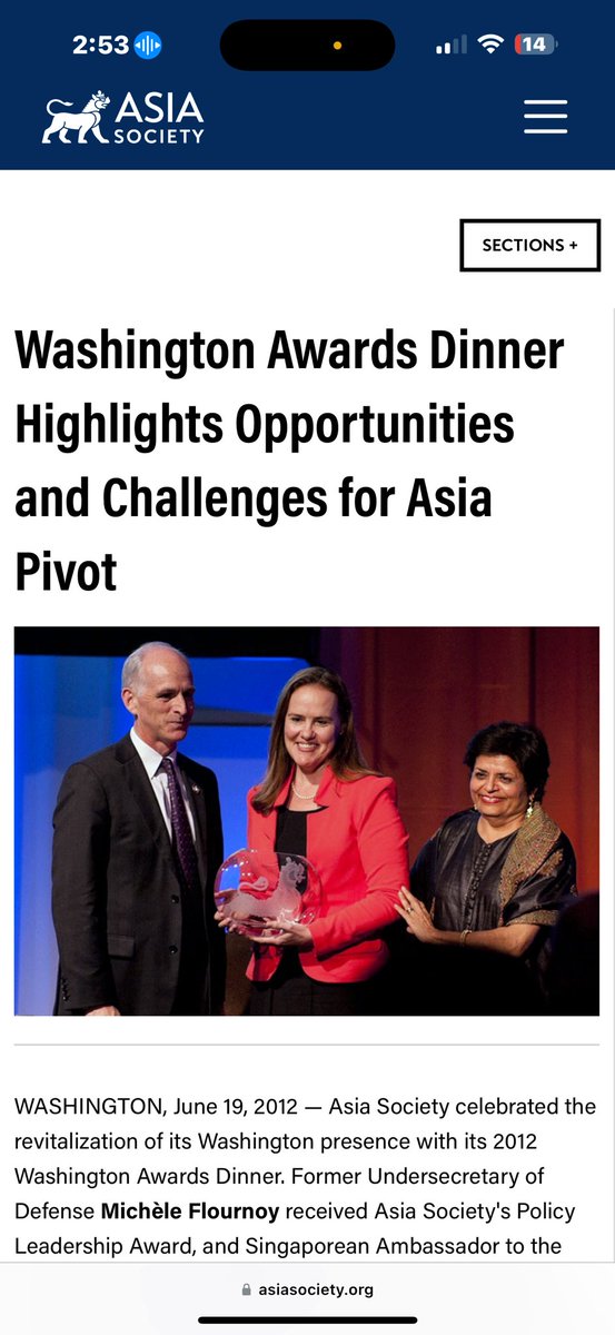 👺MICHÉLE FLOURNOY: Your receiving an ASIA SOCIETY award, alongside JOHN NEGROPONTE of Aspen Socrates (EcoHealth Alliance) and (Kissinger) McLarty Associates, and then getting your picture made with the SINGAPOREAN AMBASSADOR back in 2012, suddenly makes tons of fucking sense now. *At the same time you were lying to PRESIDENT OBAMA about “CHINA being AMERICA’S GREATEST THREAT”, as justification for the U.S. (taxpayers) to ALLOCATE TONS OF MONEY/RESOURCES to “keeping up with or BEAT the CHINESE in the TECH/AI ARMS RACES”, you had your own fucking MOSSAD-TIED FAMILY over in CHINA (Beijing/Shanghai) FEEDING the CCP and ISRAEL our most SENSITIVE INTEL, with your traitorous GLOBAL JEWRY FRIENDS at MOSSAD/GCHQ happy to help. *You did ALL of THAT while simping your fucking ASS off for ISRAEL and it’s “IMPORTANT DIPLOMATIC RELATIONS with the U.S.” — literally as Israel was secretly STEALING AMERICA’S NUCLEAR SECRETS, DEVELOPING ILLEGAL BIOLOGICAL WEAPONS (and HARMFUL ANTIDOTES like REMDESIVIR) designed to TARGET NON-JEW WHITE AMERICANS at DUKE KUNSHAN (WUHAN), DUKENUS (SINGAPORE), UKRAINE, FT. DETRICK and at DUKE/UNC/COLUMBIA, and colluding with the CCP (which it helped established). Israel even continued to DEMAND “blank check” CARTE BLANCHE ACCESS to TAX DOLLARS of the AMERICAN FUCKING PEOPLE… NO MATTER WHAT IT DID TO THE REST OF THE WORLD. (Including to us.🤦🏻♂️) *You even did webinars with ISRAEL POLICY FORUM, where you said stupid fucking bullshit like “a frayed US/ISRAEL relationship would be DISASTROUS for UNITED STATES INTERESTS,” all because CONGRESS would (justifiably) likely DENY ISRAEL another ~$4 BILLION IN U.S. TAXPAYER AID, should ISRAEL decide to just COMPLETELY FUCKING ANNEX the WEST BANK, killing THOUSANDS of PALESTINIANS and committing mass-scale GENOCIDE (again). 🤦🏻♂️🤬