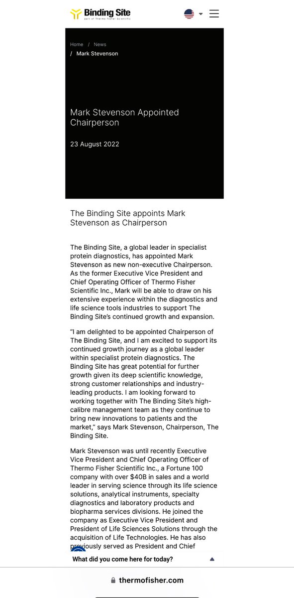 👺THERMO FISHER (TEMASEK/SINGAPORE) acquired THE BINDING SITE in OCTOBER 2022, then appointed THERMO FISHER EVP & COO, MARK STEVENS, as NON-EXECUTIVE CHAIRMAN of THE BINDING SITE. 💥FUN FACT 1: LAURENE SPERLING, the CHAIRMAN of the DUKE UNIVERSITY TRUSTEES BOARD and COMBINED JEWISH PHILANTHROPIES (BOSTON UJA/MOSSAD), is MARRIED to SCOTT SPERLING, the LEAD DIRECTOR of THERMO FISHER. 💥FUN FACT 2: GREGORY GRUNBERG, HEAD of LIFE SCIENCES for TEMASEK (SINGAPORE), is also a/an… *KAISER PERMANENTE PHYSICIAN. *DUKE UNIVERSITY ALUM *EARLY INVESTOR in SOMATUS, the AI VALUE-BASED KIDNEY treatment platform, through his PE FIRM, LONGITUDE CAPITAL… right alongside STEVE HOCHBERG, the VICE CHAIRMAN of MOUNT SINAI HEALTH, and his PE FIRM, DEERFIELD MANAGEMENT. *SOMATUS: Ikenna O. and Anthony W. (McKinsey/Gilead/Carlyle/Loews/NYU/BlackRock/UnitedHealth Group/Anthem/BCBS)