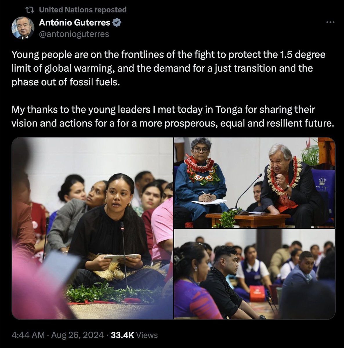 Hey Alberta, Did you know the United Nations and its leader are actively brainwashing kids all over the world to "demand" a "just transition and the phase out of fossil fuels"? Why is Canada supporting an organization that is actively fighting against us? @ABDanielleSmith https://t.co/3VlDrgtvMy