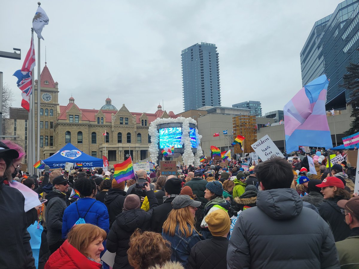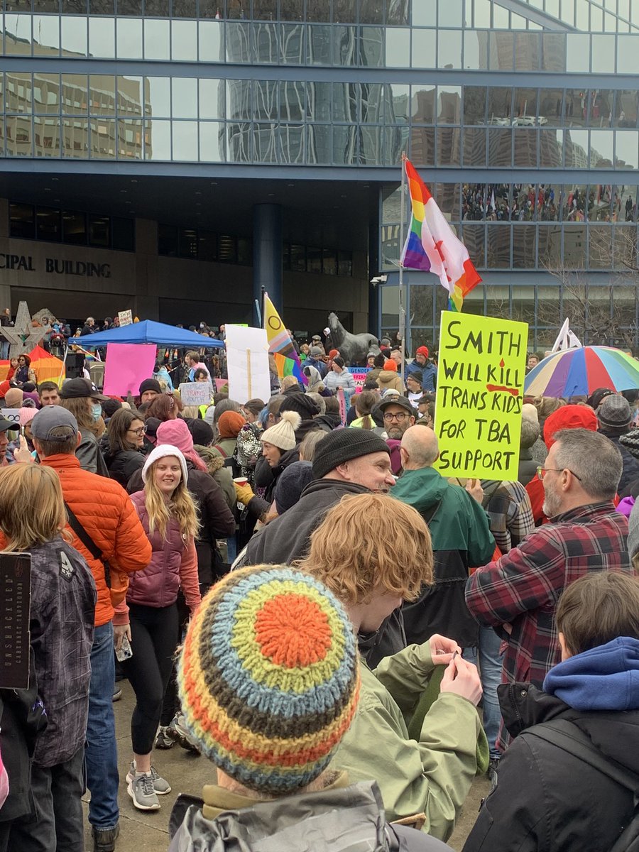 Edmonton showed up today. And we will keep showing up for trans and queer kids. #TransRightsAreHumanRights https://t.co/tweu0aQVZ4