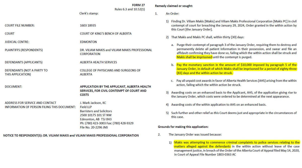 BREAKING NEWS: Alberta Premier Danielle Smith has applied to have me put in prison for 83 days, in retaliation for my wife filing complaints with the Edmonton Police and RCMP against AHS & the College (for threatening our family) I was working on the file of a 5 year old girl with cancer (leukemia), trying to find ways to help her and her family, when I received the news from AHS lawyers. Alberta Premier @ABDanielleSmith has just applied to have me put in prison for 83 days, in retaliation for my wife filing complaints with the Edmonton Police and RCMP against AHS & the College (for threatening our family). I may be the first doctor in Canada to go to prison during the COVID-19 Pandemic, and for trying to defend my family against threats and extortion from Alberta Health Services and the College of Physicians and Surgeons of Alberta. This is the only way they have to try and silence me. Fake Court Applications, fake costs, fake penalties - all issued by @JustinTrudeau appointed and bribed Alberta Judges like Justice Avril Inglis (who has been managing this extortion against my family) This application is being brought by Premier Danielle Smith’s Office, as all the documents behind this application were illegally leaked by staffers in her office directly to AHS lawyers throughout 2023. I’m certain it was with her knowledge. AHS is now escalating the threats and extortion against my wife and my family and they are collaborating with Premier Danielle Smith’s Office, now that she has secured 91% support from Albertans with cheap trinkets: a fake Alberta Bill of Rights and watered down Parental Protection Legislation. Albertans have been played. I’m going to continue to fight for my family and I’m going to do it publicly. Most Albertans may have given up on their province and the future of their children (Danielle Smith has successfully dismantled all conservative grassroots organizations like Take Back Alberta and APP, and scattered them to the winds). Only 2 weeks after the UCP AGM of Nov.2, and AHS feels more emboldened than ever to continue abusing Albertans. The honeymoon with Danielle Smith sure didn't last long. Albertans have given their province away. But I will fight for my family with everything I have. It will take a lot more than 83 days in prison to stop me. Maybe there are a few decent Albertans left, who will help me in this fight. I will be giving daily updates on this latest scandal, the "Alberta Premier Danielle Smith Prison Scandal" I will be hiring lawyers and I will reach out to @ElonMusk's legal team as well, as AHS has repeatedly said they want to silence me due to my Twitter and other social media posts. Please pray for my family. 🙏 #cdnpoli #ableg