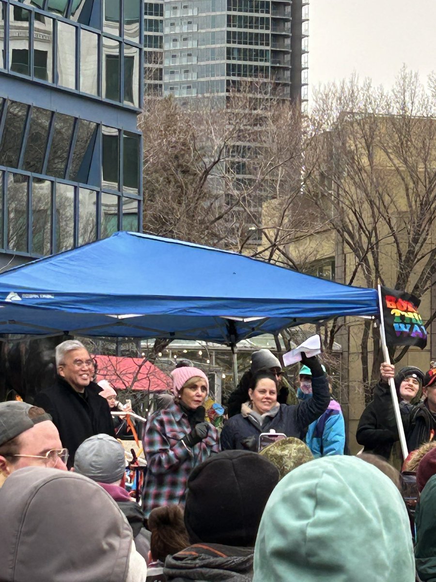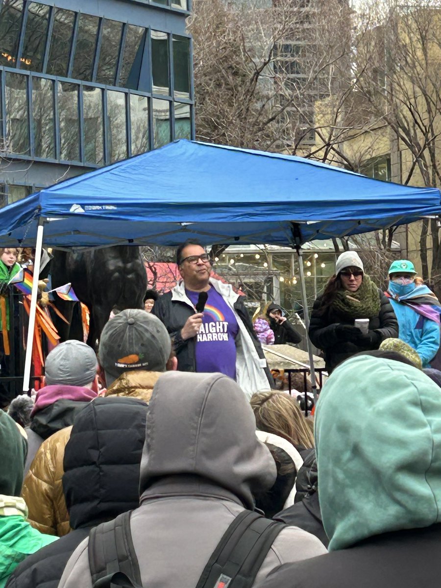Very pleased to stand with activists from @UnitedNurses at the rally in #yeg to oppose Danielle Smith’s attack on trans youth. https://t.co/lsJjkKOmg9