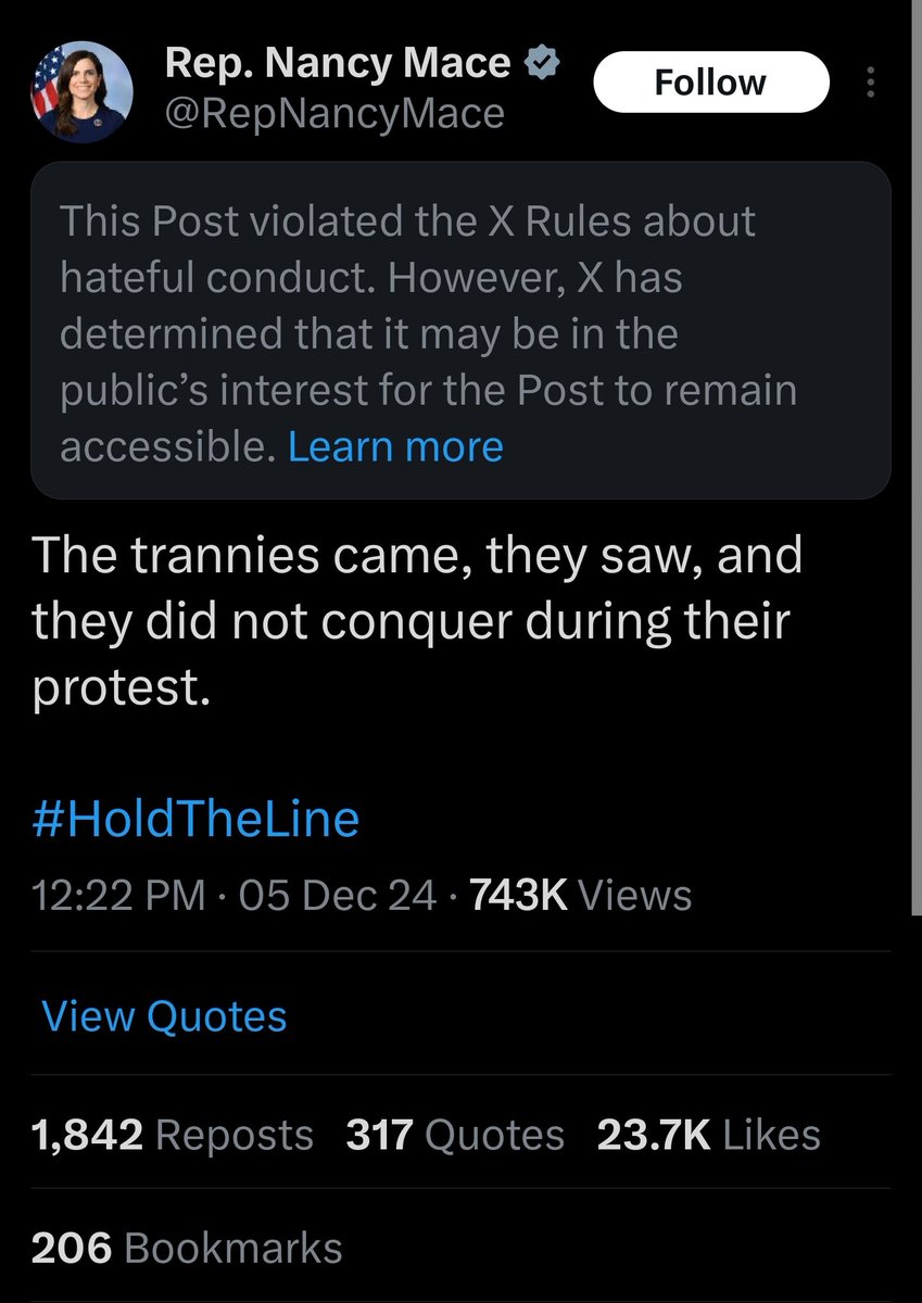 If it hasn't become aparent that X is playing God, let this be a further reminder to you. They added visibility labels to an elected US Representative, so don't think for 1 minute they won't do it to you or I. Unfortunately all of this seems to continue going unaddressed. https://t.co/oRyJdal9bQ
