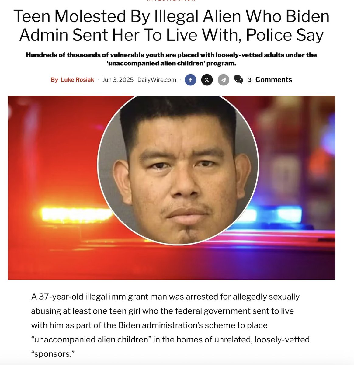Unaccompanied alien children were placed w "sponsors" by the Department of Health and Human Services, which is not a law enforcement agency and had no ability to do anything about it when they were trafficking kids for labor or sex. 1/3 disappeared. READ: https://www.dailywire.com/news/teen-molested-by-illegal-alien-who-biden-admin-sent-her-to-live-with-police-say