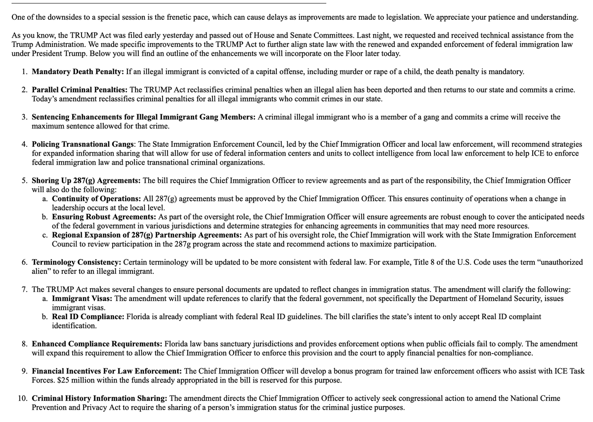 The overwhelming negative feedback from the voters obviously forced a change in course. The bill, even with these proposed changes, though, is weak, weak, weak. We need strong policies that will ensure that local and state agencies are actively assisting with interior enforcement efforts of the Trump administration. Half-measures won’t suffice.