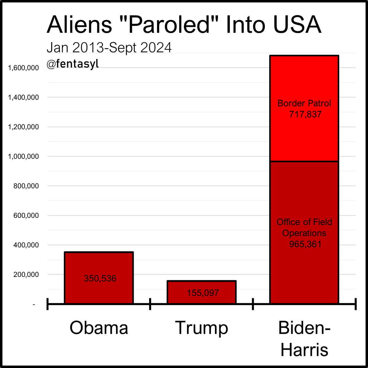 Kamala-Mayorkas opened the border in unprecedented fashion, inviting in more than the previous 2 administrations COMBINED. But this number is misleading. Kamala-Mayorkas also changed policy so millions of aliens Apprehended by or deemed Inadmissible by CBP were granted entry into the interior of the USA for years under flimsy and/or fraudulent terms of "parole" & "asylum" Obama & Trump didn't fly hundreds of thousands of Inadmissible Haitians into Middle America. During the Obama & Trump presidencies, "Inadmissible Alien" did not mean "Inadmissible Alien, later flown to Ohio." But it means exactly that under the Kamala-Mayorkas Plan For America.