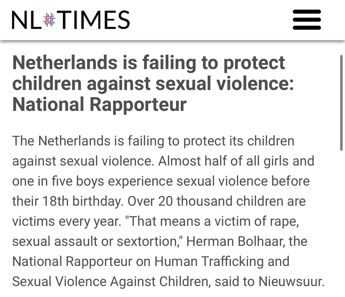 Almost 50% of girls are r*ped in the Netherlands before the age of 18. Terrible country. It’s also a global hub for CP, hosting most of the world’s CSE material. I think we need to have a conversation about the Netherlands. https://t.co/h0o68zcPwi