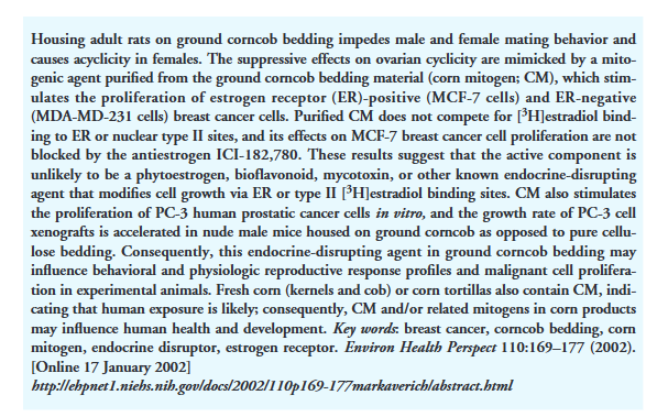 Corn (oil and starch) is a staple part of rodent chow in experiments, and lab rodents also sleep on corn cob bedding. The researchers behind the 2002 study found that rats could be made infertile simply by TOUCHING corncob bedding. https://t.co/UoSeT6eKgh