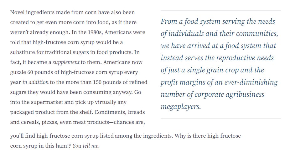 Because there is so much corn, food makers are constantly finding ways to insinuate it into more and more food. High-fructose corn syrup was one product that was created to do precisely this. Virtually every processed food product contains HFCS. https://t.co/S8KMlHy9oI
