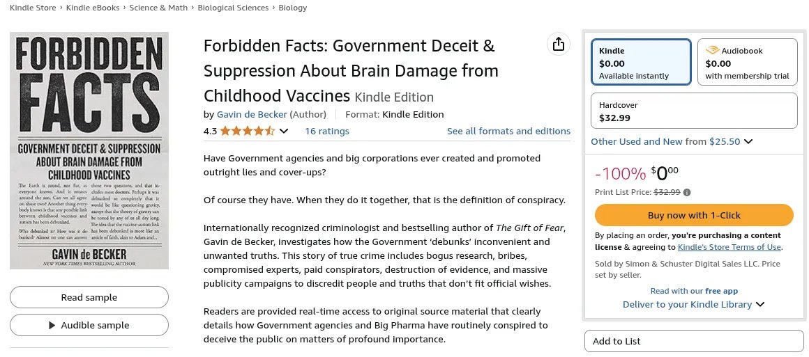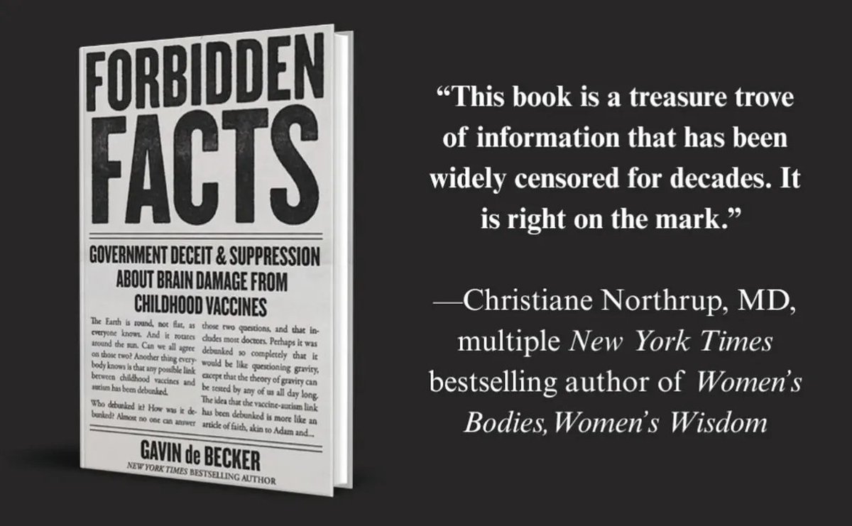 Right now and for the next few days, Forbidden Facts is free to download on Amazon. https://www.amazon.com/Forbidden-Facts-Government-Suppression-Childhood-ebook/dp/B0FJ2PQ7XJ/ I highly recommend you get this book, educate yourself on the history of just how much we’ve been lied to, and you raise your voice. We’re in the midst of a massive awakening and we can all contribute. Let’s unwind the decades of vaccine propaganda and stop the harm once and for all.