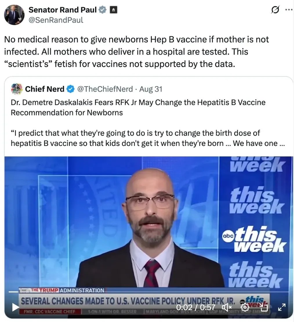 And then on X, Rand Paul zeroed in on the problem: the CDC’s zeal around vaccines mirrors a fetish-like obsession that is not supported by data. Meanwhile, the Hepatitis B shot for newborns—one of the most controversial vaccines ever—was defended with a narrative that never made sense. But PR turned it into moral dogma.