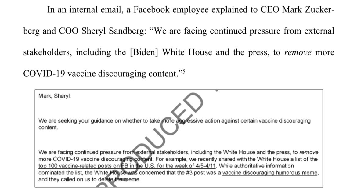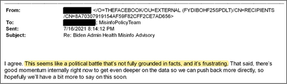 The Biden administration also wanted Facebook to remove TRUE information as well.
