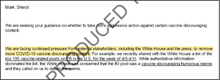 These documents, AND OTHERS that were just produced to the Committee, prove that the Biden Admin abused its powers to coerce Facebook into censoring Americans, preventing free and open discourse on issues of critical public importance.