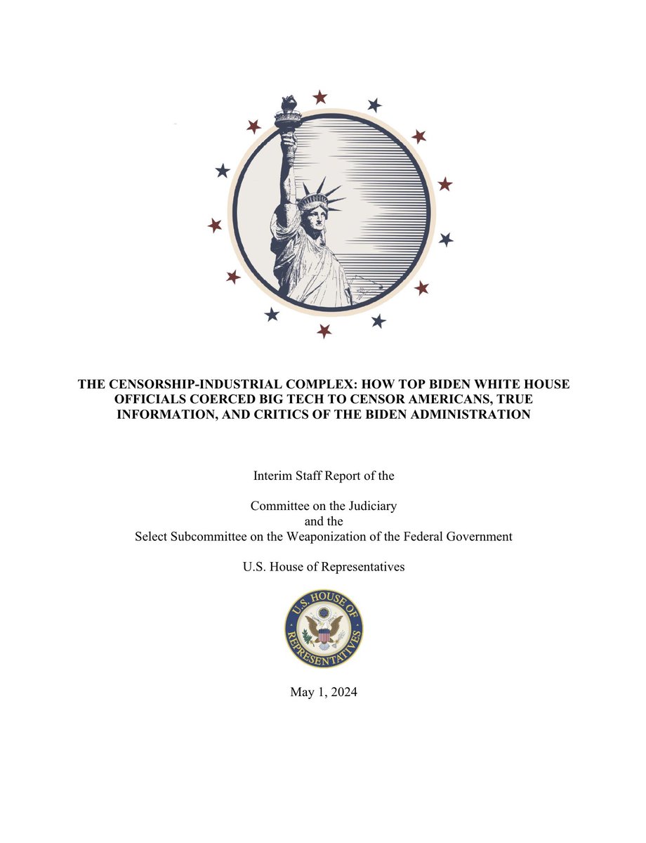 .@JudiciaryGOP and @Weaponization will continue this critical investigative work to further inform legislative solutions to dismantle the Biden Administration’s censorship regime.