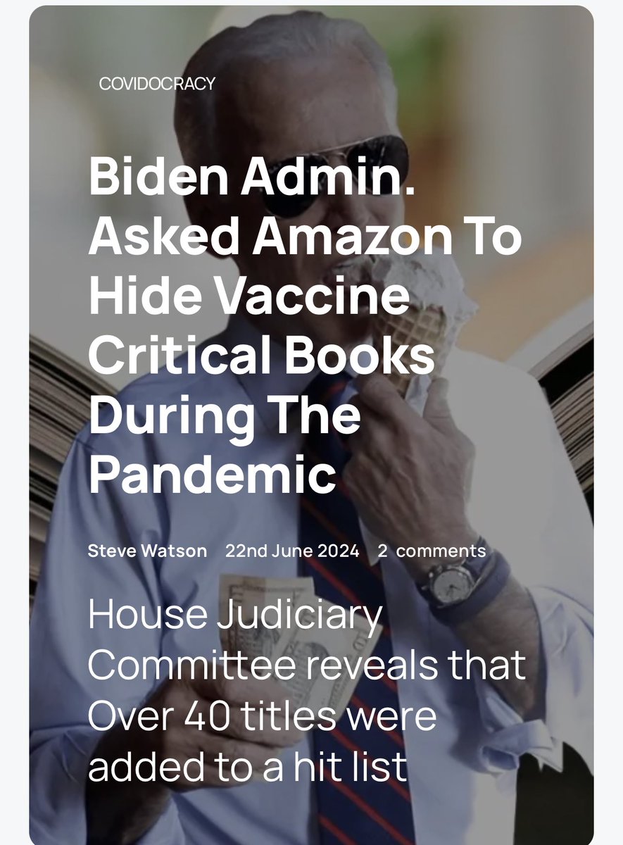 The Biden Administration quietly asked Amazon to hide books that may have revealed that they were poisoning people with the Covid vaccine. Safe and effective! https://t.co/HFZYEoYnY2