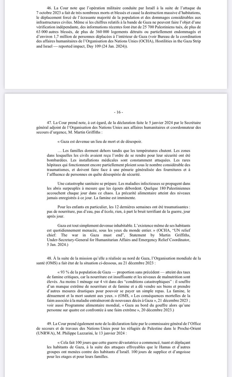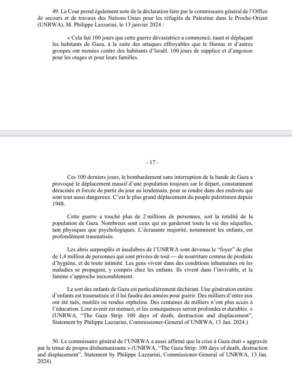 5. Cette décision de la CIJ contre Israël est, en partie, basée sur les rapports de @UNRWA et les alertes répétées de son commissaire general @UNLazzarini, qui sont considérés comme une source crédible et fiable par les juges internationaux! 👉 https://www.icj-cij.org/sites/default/files/case-related/192/192-20240126-ord-01-00-fr.pdf