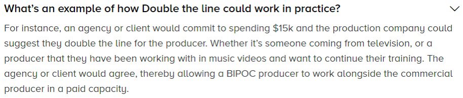 /5 AICP’s members are responsible for 80-85% of all motion picture ads in the United States. The AICP created the Double the Line program, which creates extra positions on set only for BIPOC individuals.