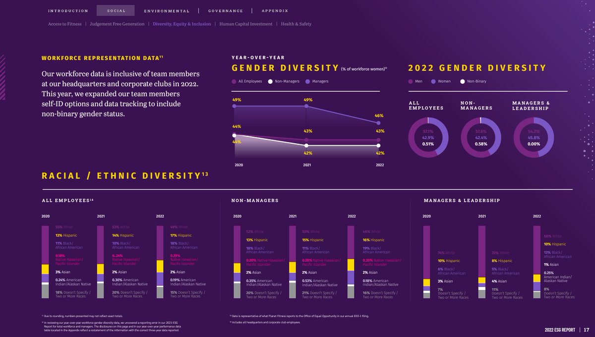 It just keeps getting worse! In @PlanetFitness's DEI report, they boast about creating a more "diverse" workforce by hiring less white people year over year. Planet Fitness is discriminating against White people in their hiring practices. https://t.co/2GfFISvLKS