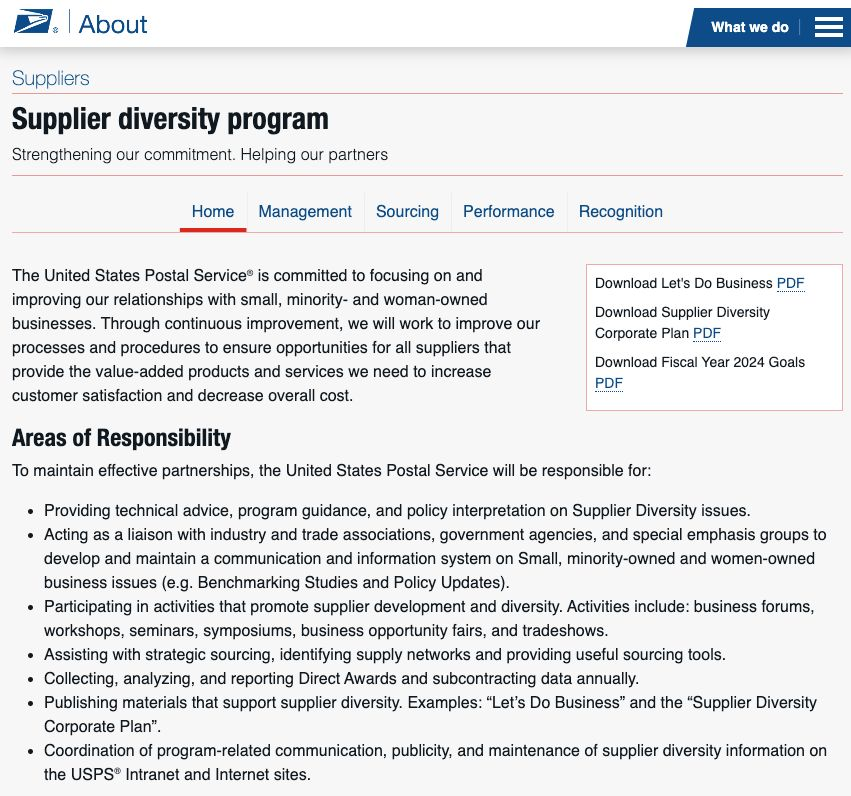 USPS has a supplier diversity program to discriminate against suppliers based on their race and s*x. This page is still up. https://t.co/qZl60g8ItI