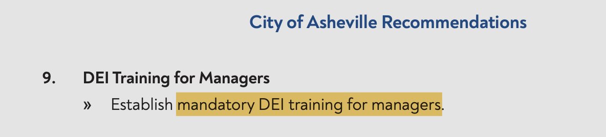 You thought DEI went away? Guess again. If you're a manager at the City of Asheville, they want you to take a MANDATORY, can't-get-out-of-it, DEI training course. https://t.co/FxUp1Foa3Z