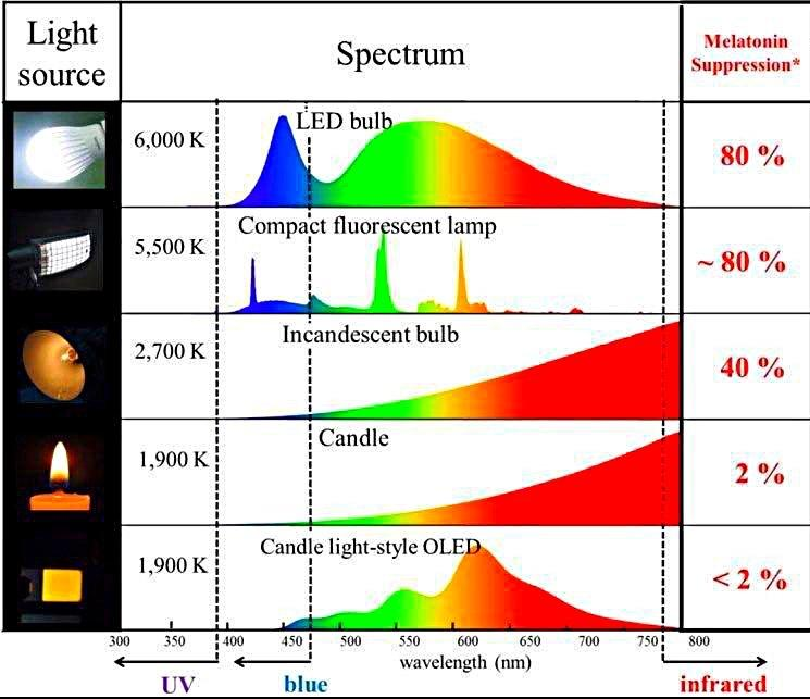 This image gets thrown around alot to show Candle-style OLED lights are superior to other light sources. This is a Marketing ploy. This light is a far cry from being "healthy" night light. Let's talk about it.. https://t.co/KYN0oPbNAl