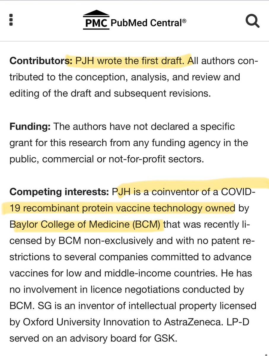 3/ Here too, the “follow the money” principle applies. It appears that Peter Hotez is a conscienceless mouthpiece who will do anything for money. In this case, he received funds from the @gatesfoundation. I doubt that these were the only financial contributions he received.