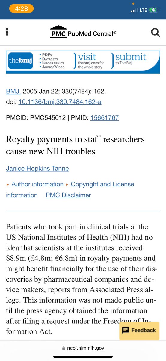A : I’m sick and tired of individuals who believe there are no conflicts of interest within the FDA, CDC, and NIH. They can remove what stories they want, like this one to try to hide it, but there’s always other sources. This link is not available. https://jamanetwork.com/journals/jama/article-abstract/2824834?resultClick=…
