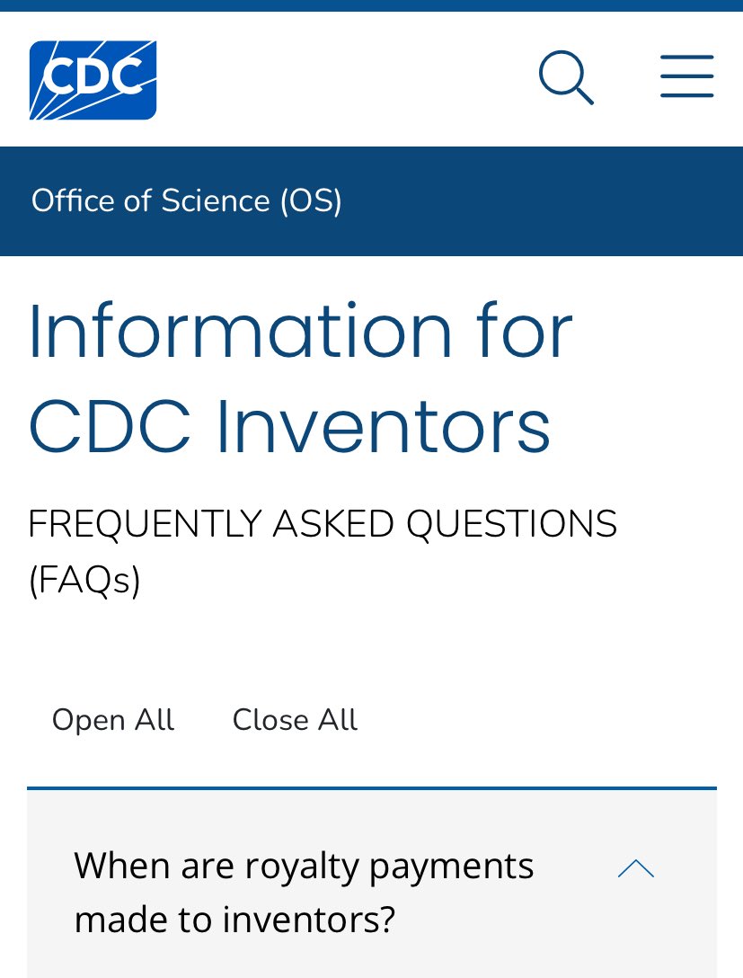 Yes, they are very aware of the conflict of interest problem. However, they really do value their investors. Most of which are pharma companies. They make investing a cinch and let them know about royalties. https://www.cdc.gov/os/technology/techtransfer/inventors.htm