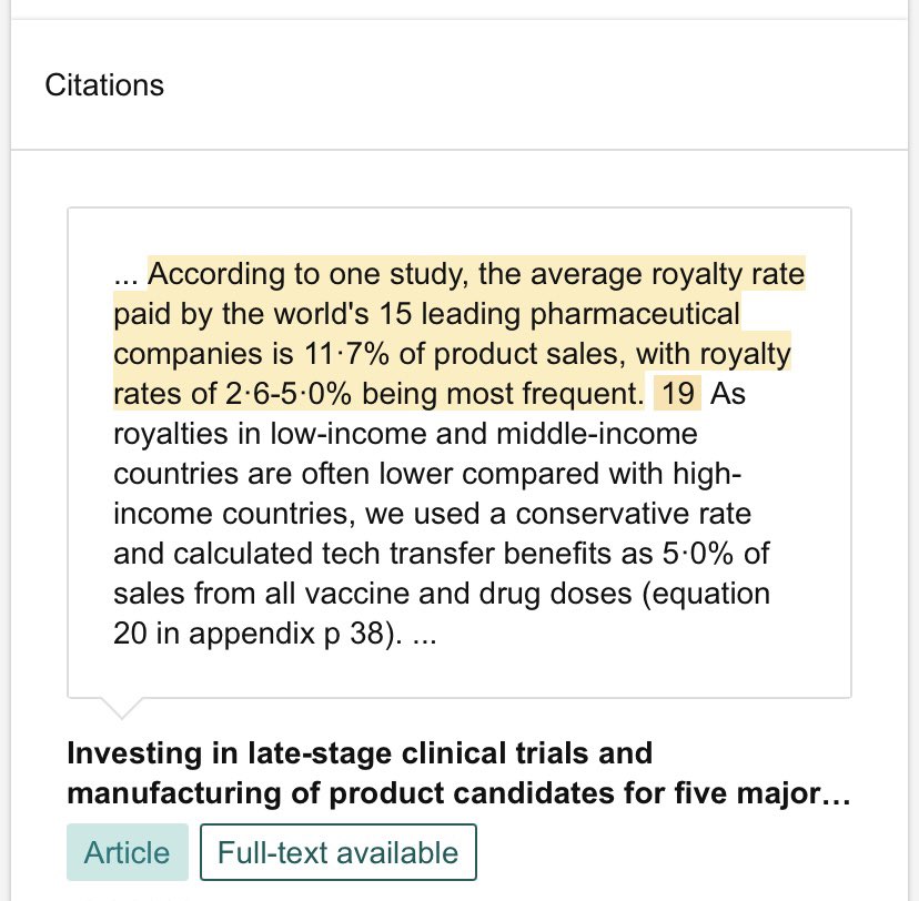 Their royalty rates are extremely profitable. Here’s an example. https://www.researchgate.net/figure/Frequency-of-royalty-rates-paid-by-the-top-15-pharmaceutical-companies-5_fig2_312519641#:~:text=According%20to%20one%20study%2C%20the,·0%25%20being%20most%20frequent.