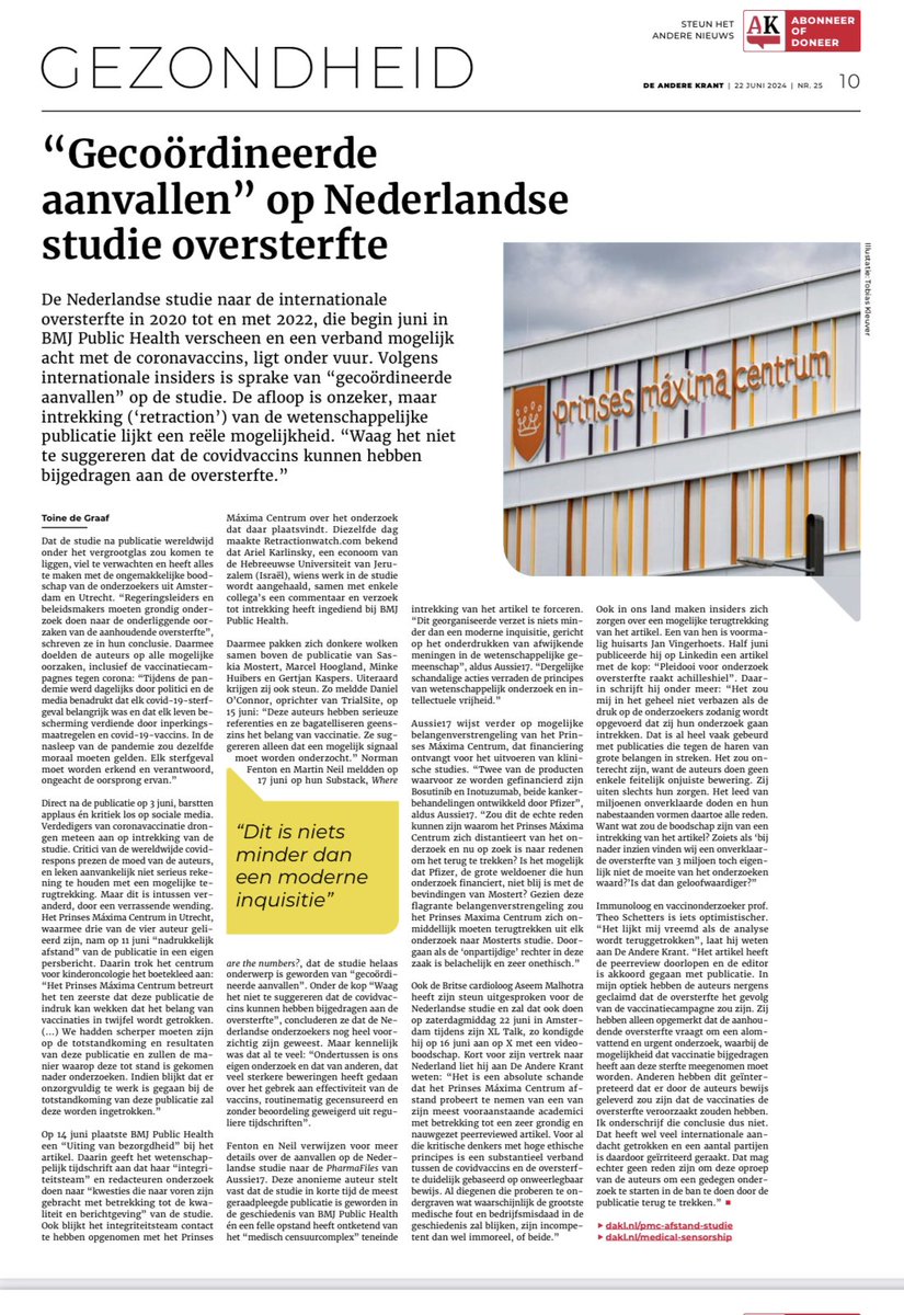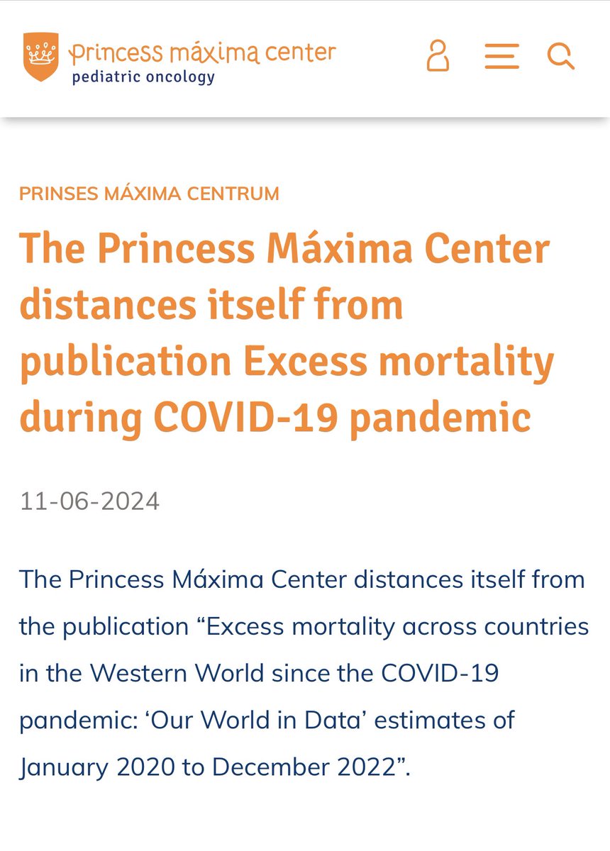 BREAKING NEWS NETHERLANDS: ‘It’s an absolute disgrace that the Princess Maxima Center is trying to distance itself from one of its most distinguished academics regarding a very thorough and meticulously peer reviewed paper. For all those critical thinkers with high ethical principles a substantial link with the covid vaccines and excess deaths is clearly based on irrefutable evidence. All those trying to undermine what is likely to turn out to be the greatest medical mistake and corporate crime in history are either incompetent, immoral or both’