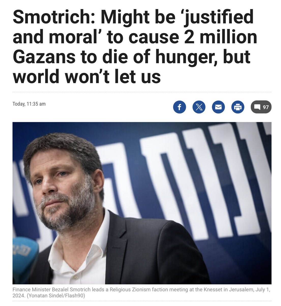 Today, Israel's Foreign Affairs and National Security ministers attended a conference on ethnic cleansing in Gaza, replacing Palestinians w/ Israeli settlers. Conference organizer Daniella Weiss was clear: the plan is to starve Palestinians until they flee for their lives. https://t.co/XUna6Y4Kbm