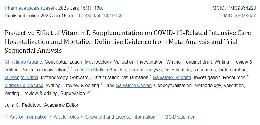 In January 2023, a study by Christiano Argano and colleagues found that taking vitamin D alone reduced the risk of death and ICU admission from COVID-19 infection. Specifically, the chances of death dropped by about 51%, and the risk of ICU admission decreased by about 72%.