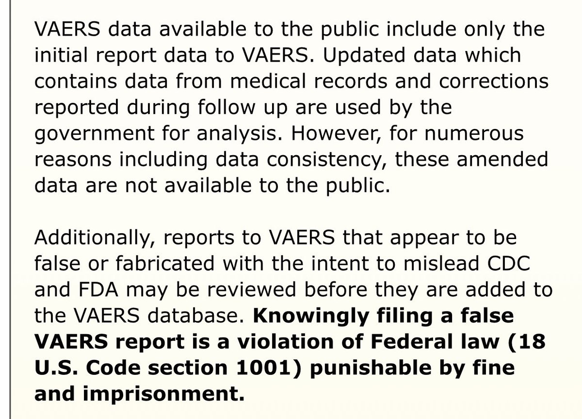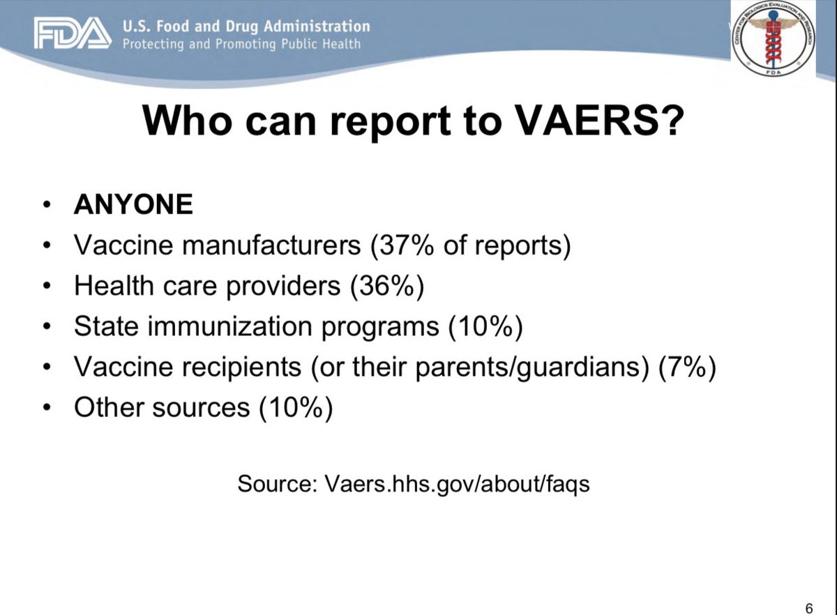 So I wanted to see what iI could find about the VAERS process. Sure anyone can submit a report and that is the point, its a passive pharmacovigilance system designed to alert the CDC and FDA if there is a pattern of safety signals.