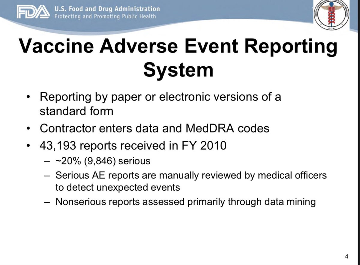 I provide this for further insight into the importance placed on VAERS by FDA and CDC.