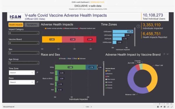 ICAN’s legal team sued the CDC twice leading to a court order requiring release of the data. ICAN has taken the CDC’s official raw data and created a dashboard interface which allows users to graphically view the 10 million health entries obtained by ICAN.