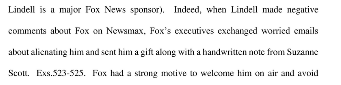 A fascinating detail about Fox's relationship with MyPillow tycoon Mike Lindell, their most important advertiser — after Lindell insulted Fox in a Newsmax appearance, Fox sent him a gift and a handwritten note from their CEO to win him back.