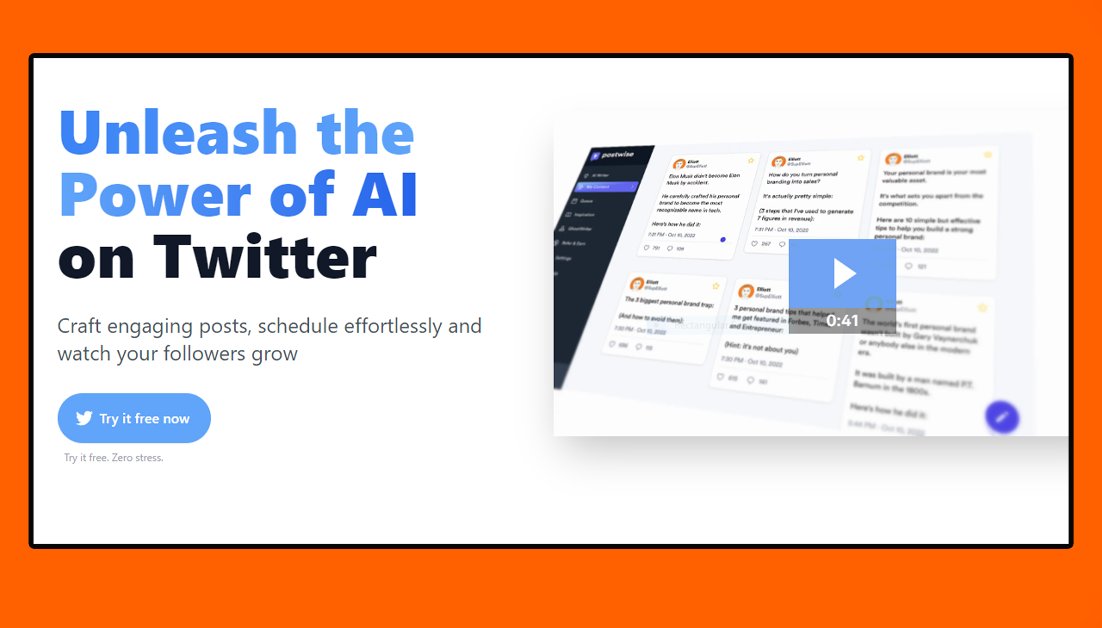 1. Postwise @TryPostwise is the worlds first AI thread writer tool for Twitter. Simply put in a topic and get a viral thread in seconds. You can also use this AI tool for: 1. For Sending Auto DMs 2. Sales - plug links Try this Today: https://postwise.ai https://postwise.ai