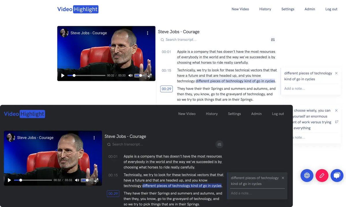 Video note-taking tool. Summarize, scan, highlight, screenshot Youtube videos in minutes. Less time spent transcribing, pausing and rewinding. More time for exploring, analyzing that beautiful content. http://videohighlight.com