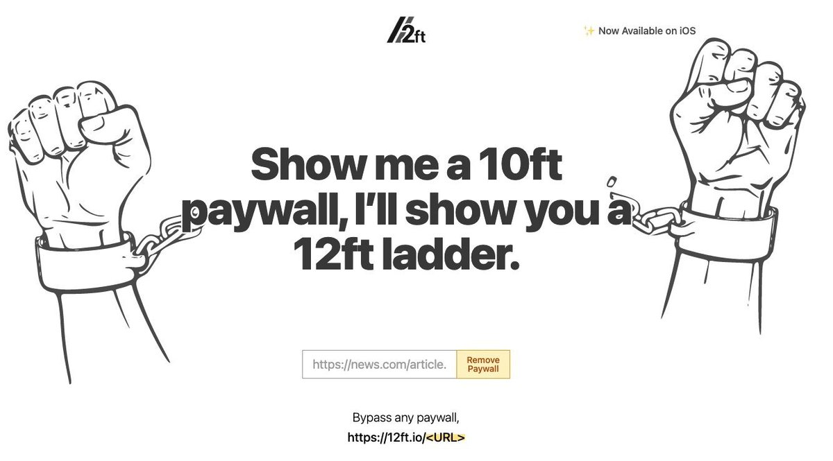 2. http://12ft.io Want to read an article, but there’s is a paywall? Simply insert the URL into 12ft ladder and gain access (for free). It will unlock almost all paywalled articles.