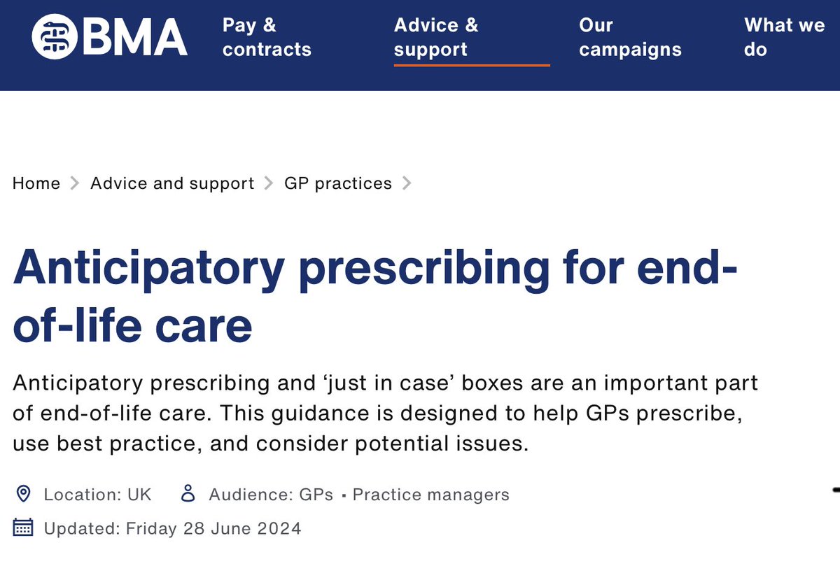 Just-In-Case medication = Anticipatory Care medicine= End-of-Life drugs It’s just a nicer way of saying “We are going to kill you now”